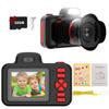 The kids' camera features a 360° rotating lens, allowing children to take photos and videos just like a real camera.