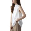 This is a women's sleeveless blouse. The V-neck creates a slimming effect around the neck, making your face look smaller and enhancing your feminine charm. The high-quality chiffon material exudes a refined atmosphere and creates an elegant image. The relaxed silhouette flatters your figure, creating a slimming effect.