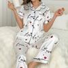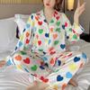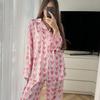Pijama Satin Ipak Bahor Yoz Qisqa Yengli Uzun Shim Sevgi Yuragi Yupqa Uyqu Kiyimi Ayollar Salqin Pijamalar Ayollar Pijamalari