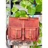 goat leather messenger bag with a durable inner lining made of canvas.