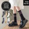 5 Pairs of Women's Summer Thin Style In The Tube Wooden Ear Side Socks