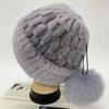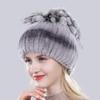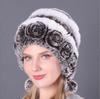Qizg'in Sotuv Qishki Ayollar Gul Chiziqli Tabiiy Haqiqiy Mo'yna Shlyapalar Xonim Issiq To'qilgan Haqiqiy Reks Quyon Mo'ynasi Shapkalar Ochiq Havoda Mo'ynali Bini Shlyapalar
