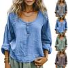 Women's Casual Long-sleeved Round Neck Solid Color Cotton And Linen Top